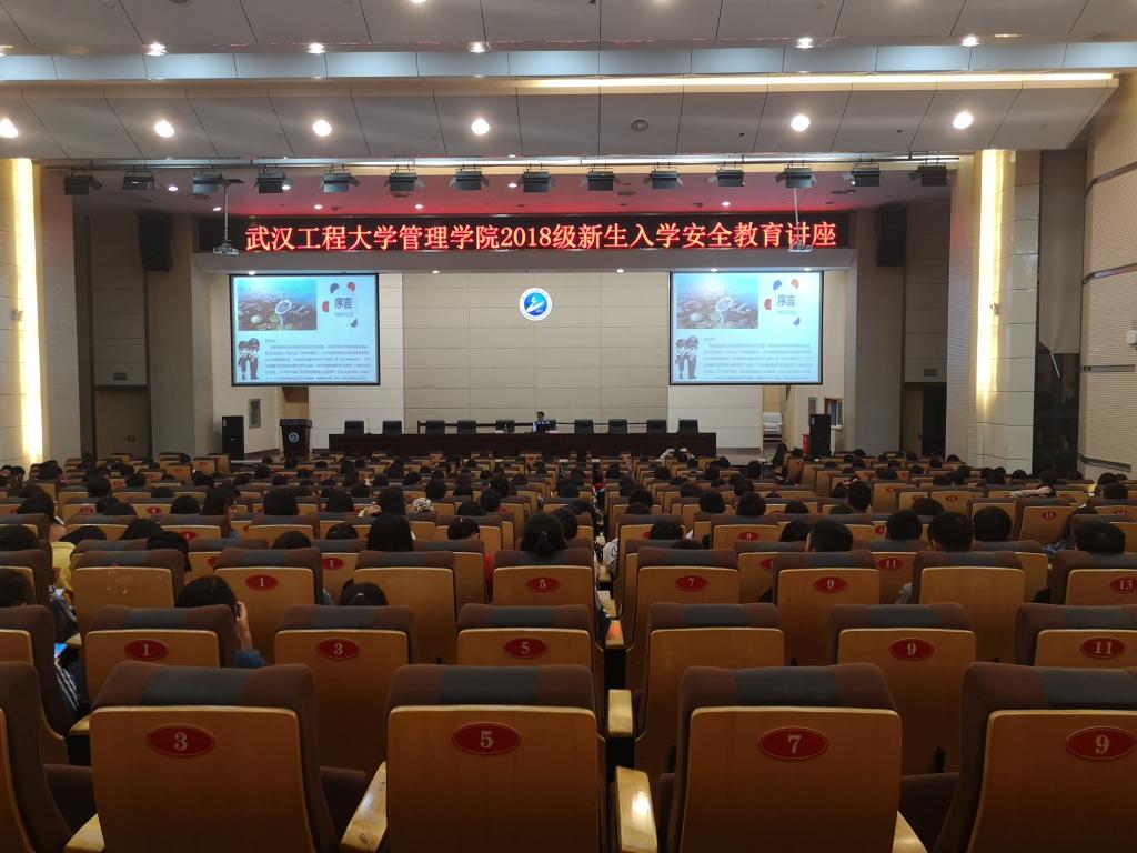 本网讯(通讯员张荟)11月1日晚,菠菜导航2018级新生入学安全教育讲座在四教多功能报告厅举行,邀请学院对口安全导师——武汉市公安局东湖新技术开发区分局警官马山,为2018级新生作安全教育辅导报告,报告会由公司党委副书记范东芳主持。